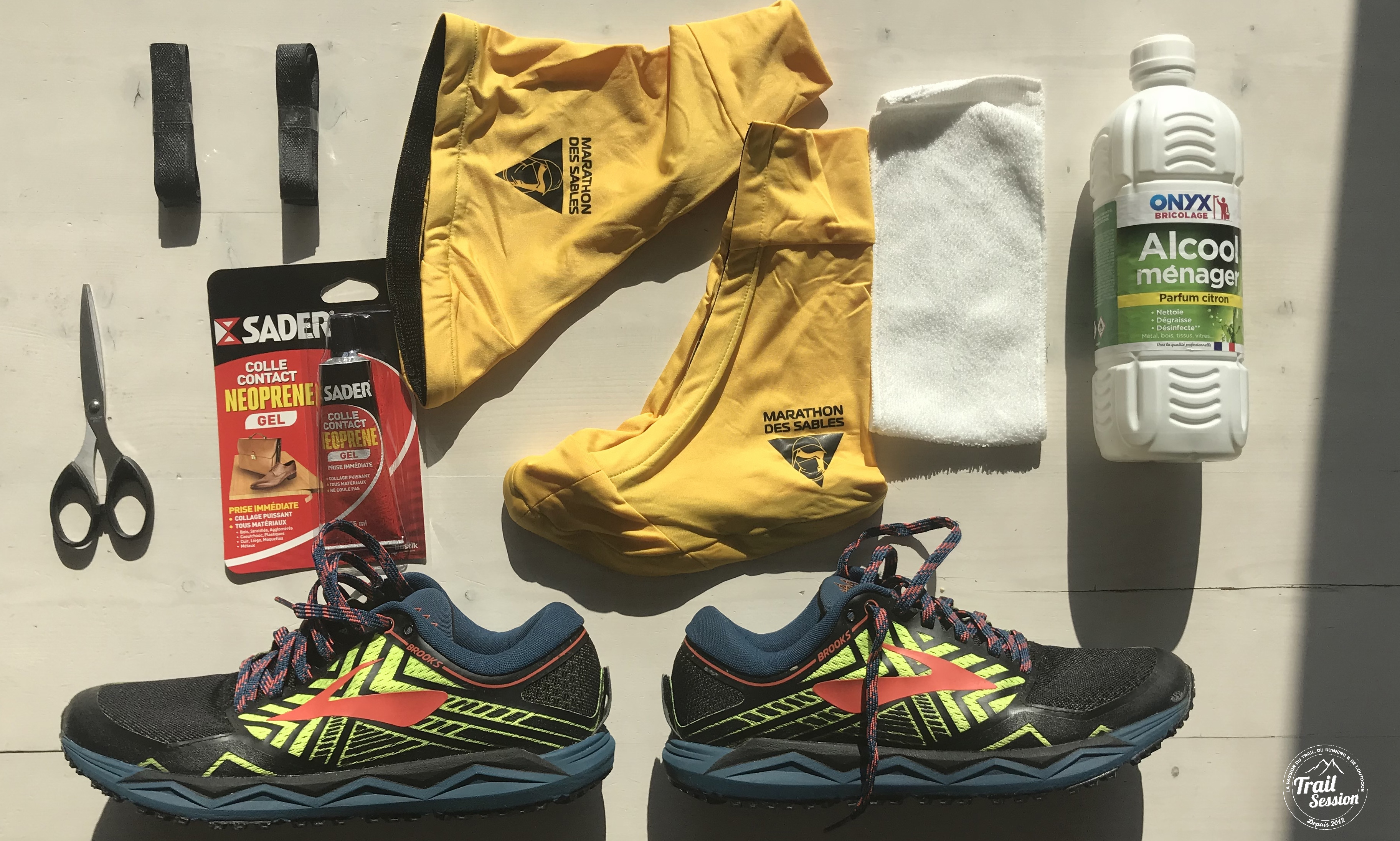 L’utilisation de guêtres peut être fort utile dans les passages de sable. Trop peu de concurrents se rendent chez un podologue afin de préparer leurs pieds ; c’est un tort que beaucoup regrettent après. Deux tailles supplémentaires et des modèles de chaussures larges au niveau des orteils permettront un meilleur confort lorsque les pieds gonfleront par la chaleur… ou par les pansements adhésifs.