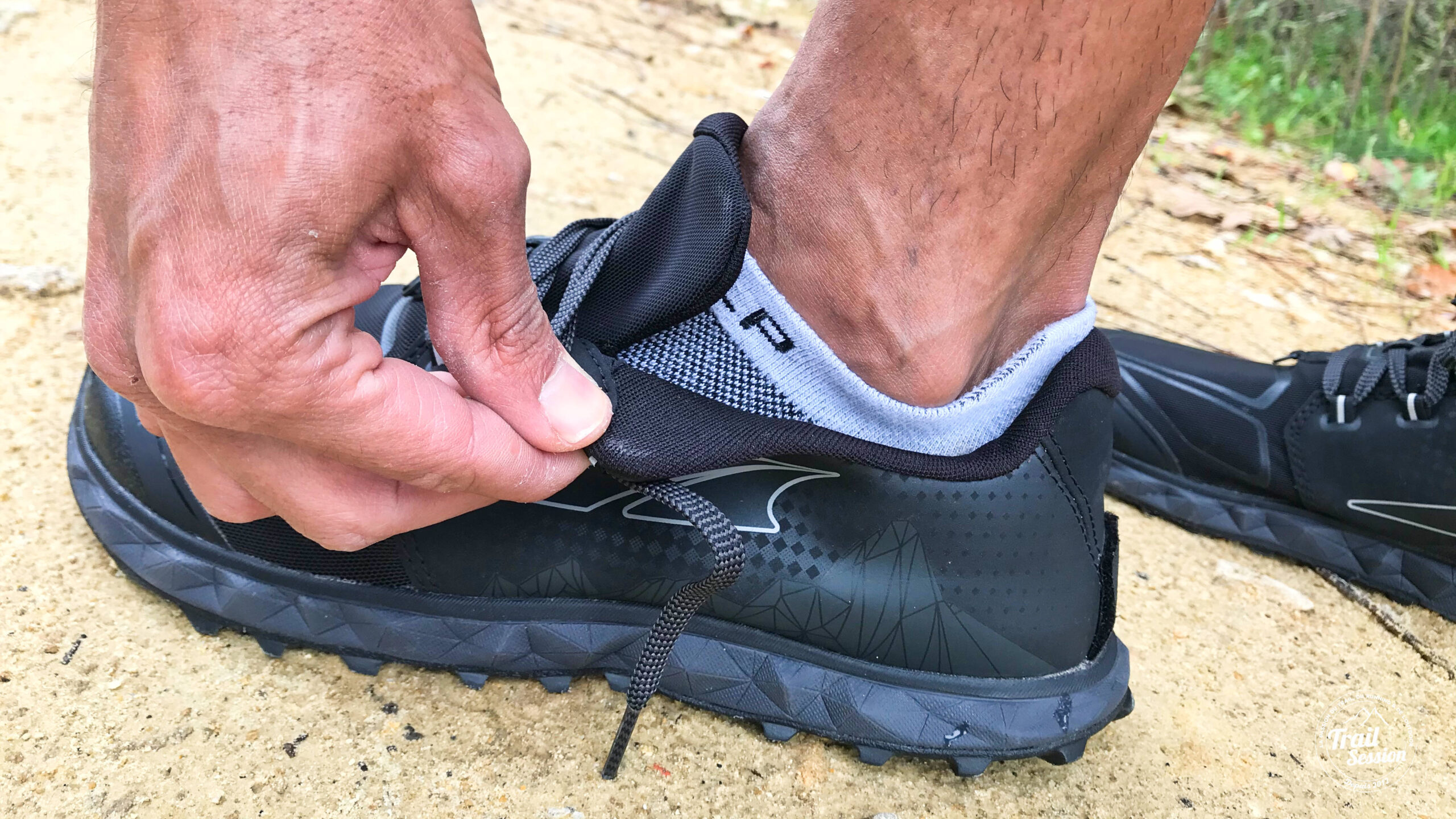 Une chaussure de trail sans protections associées n’en sera pas vraiment une. À ce petit jeu, Altra s’en sors toujours bien et il n’est pas étonnant de retrouver un pare pierre sur l’avant ainsi qu’un système pour maintenir des guêtres.