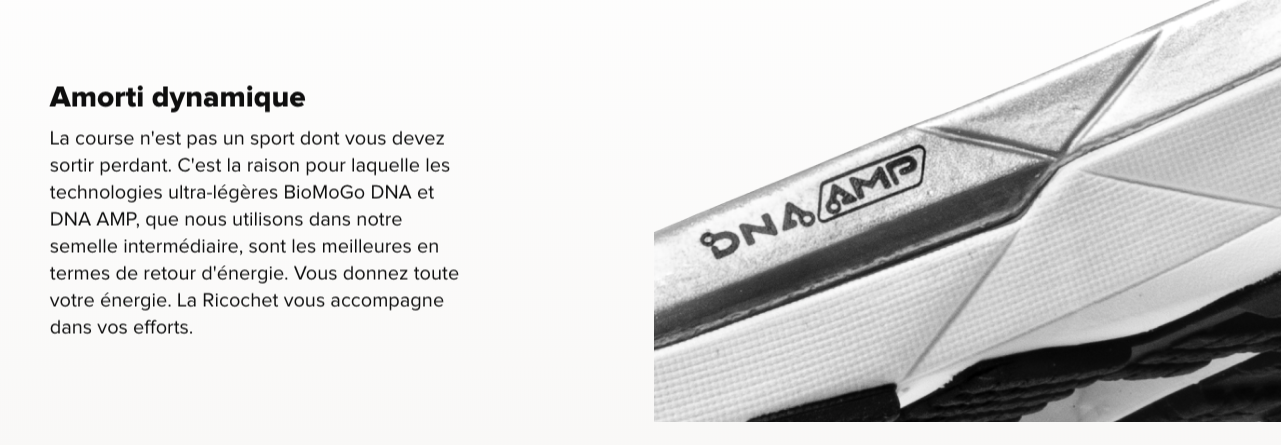 Bon, là-dessus, très clairement pas de mauvaises surprises. En conditions test sur terrain plat ou légèrement vallonné, la semelle intermédiaire DNA AMP permet d’avoir un super dynamisme et le retour d’énergie est bluffant sur les relances.