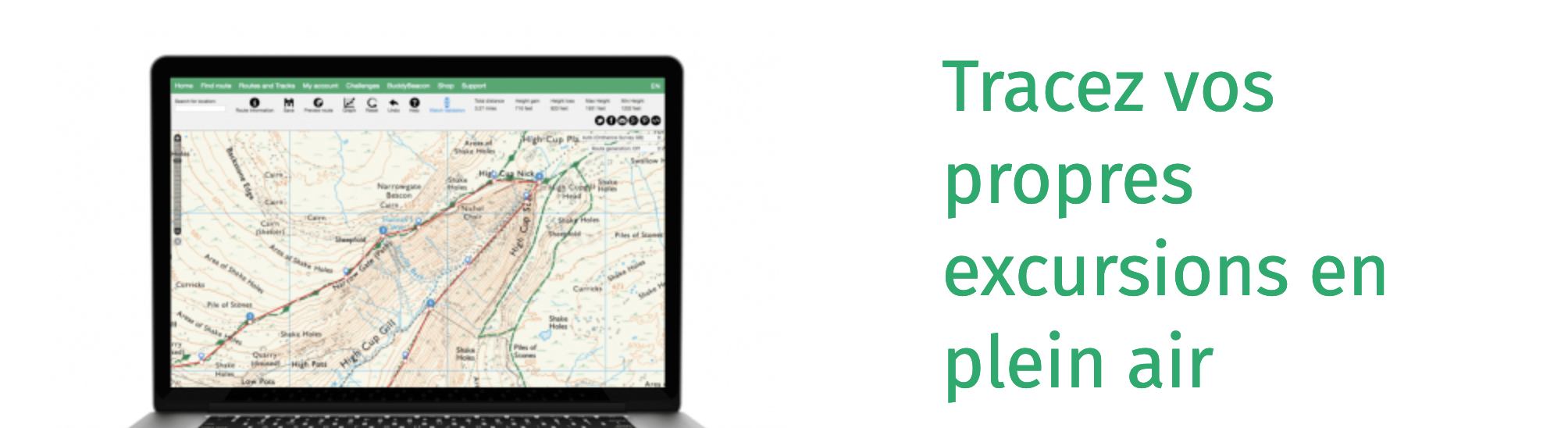 Comme beaucoup d’applications, ViewRanger vous permet de visualisez en direct vos statistiques, incluant la distance, la durée et l’altitude avec les dénivelés positifs et négatifs.