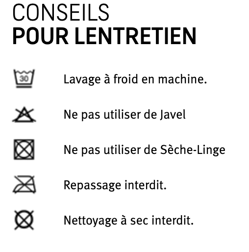 Un petit conseil d’utilisation que j’ai remarqué par rapport au modèle précédent, c’est sa température de lavage et sa contre indication à l’utilisation du fer à repasser. On ne sait jamais si vous avez les deux modèles.