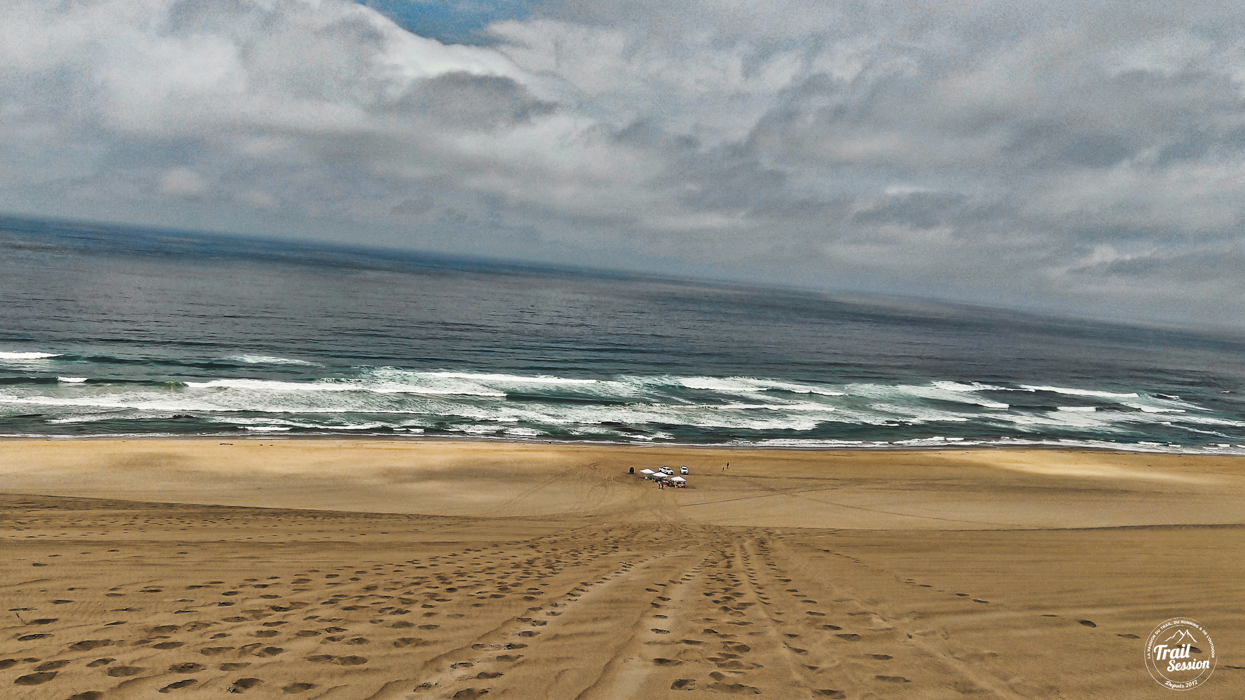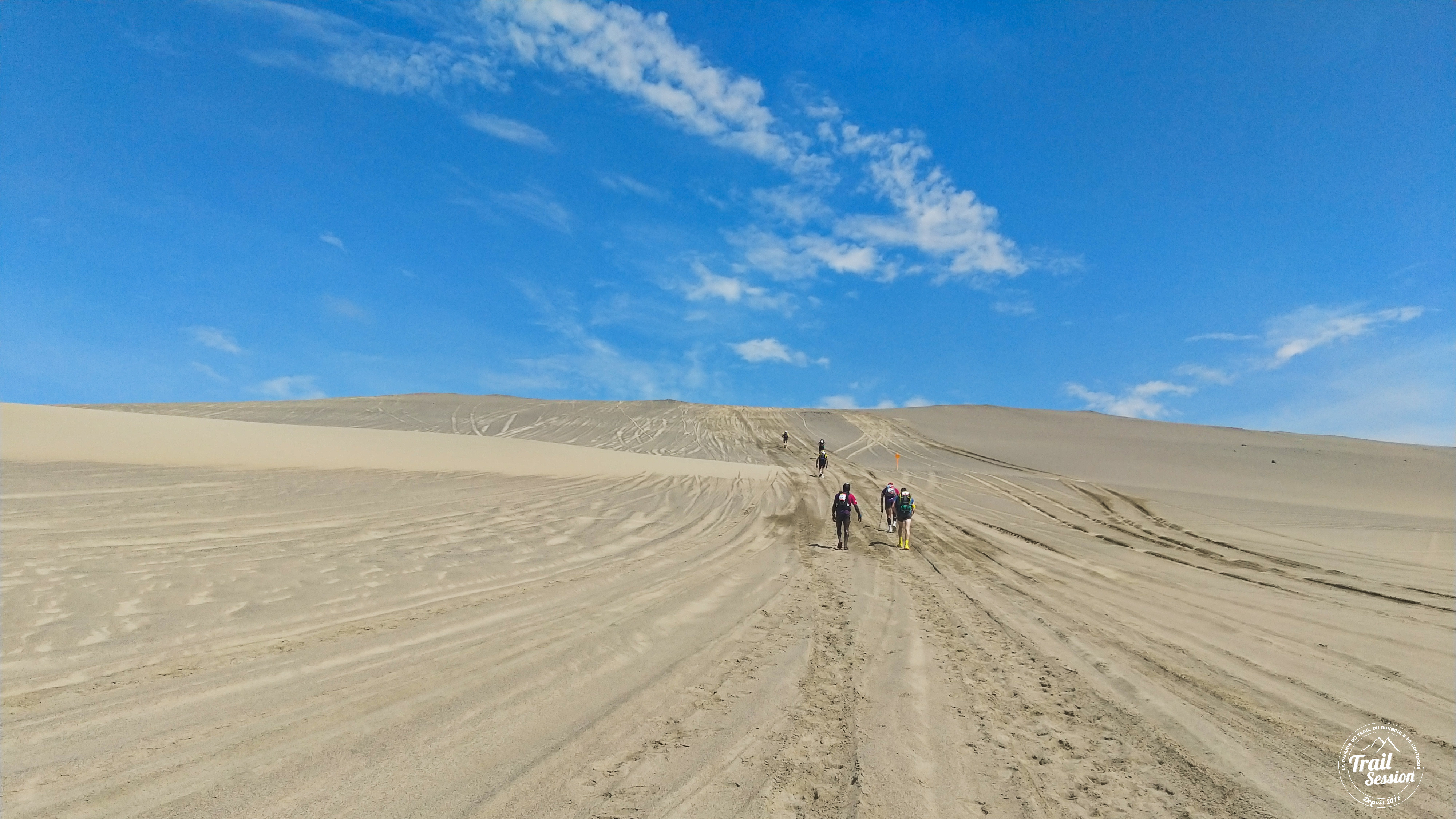 Après un grand passage à vide vient la descendre de la fameuse dune, vous savez, celle que j’ai montée lors de la première étape. C’était le kiffe total avec cet océan en fond il y a, à ce moment là, rien de plus beau.