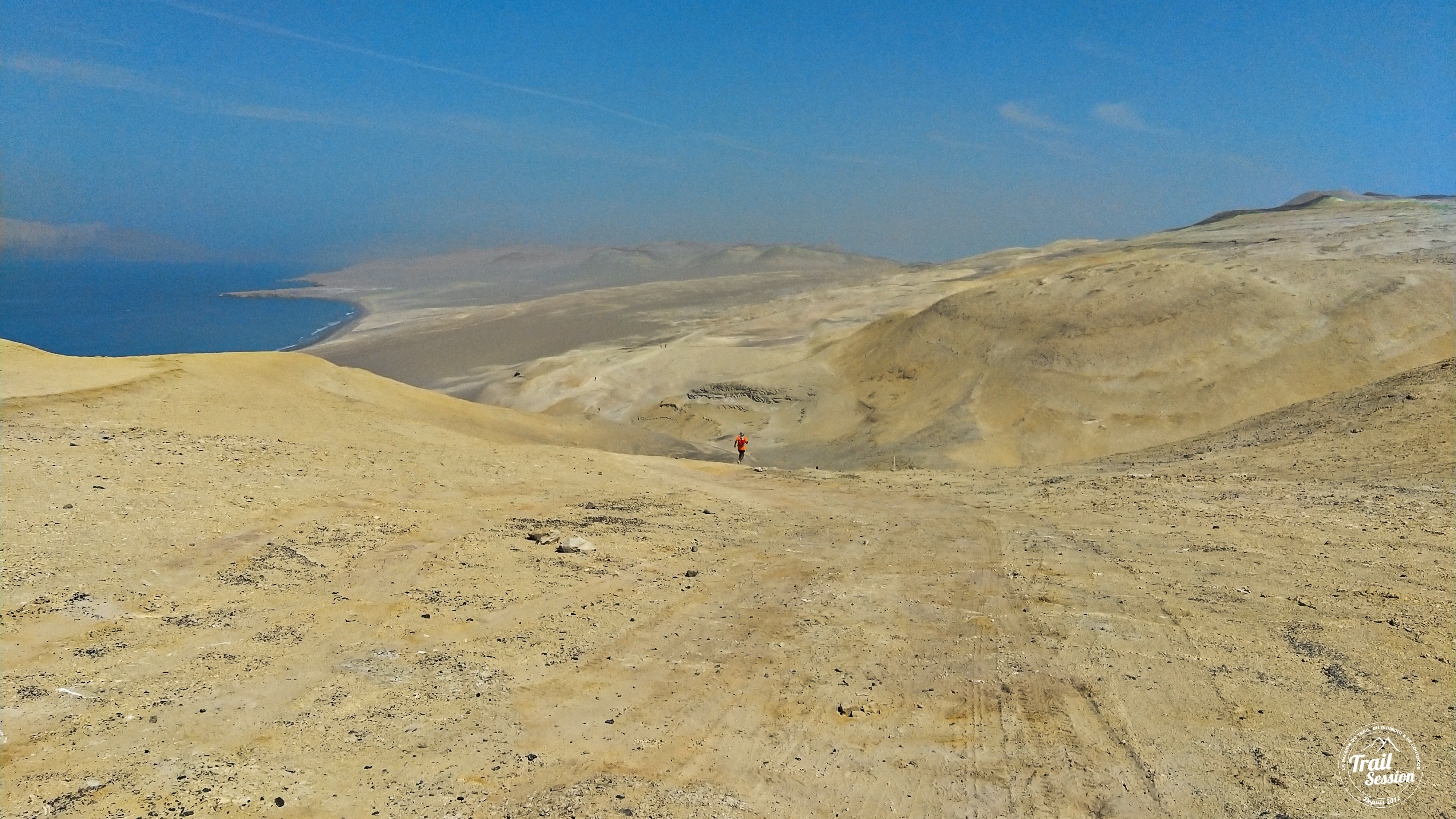 S’en suit une longue ligne droite de terrain aride où la plupart des coureurs se donnent le plaisir de courir et d’admirer les grandes étendues du désert d’Ica.