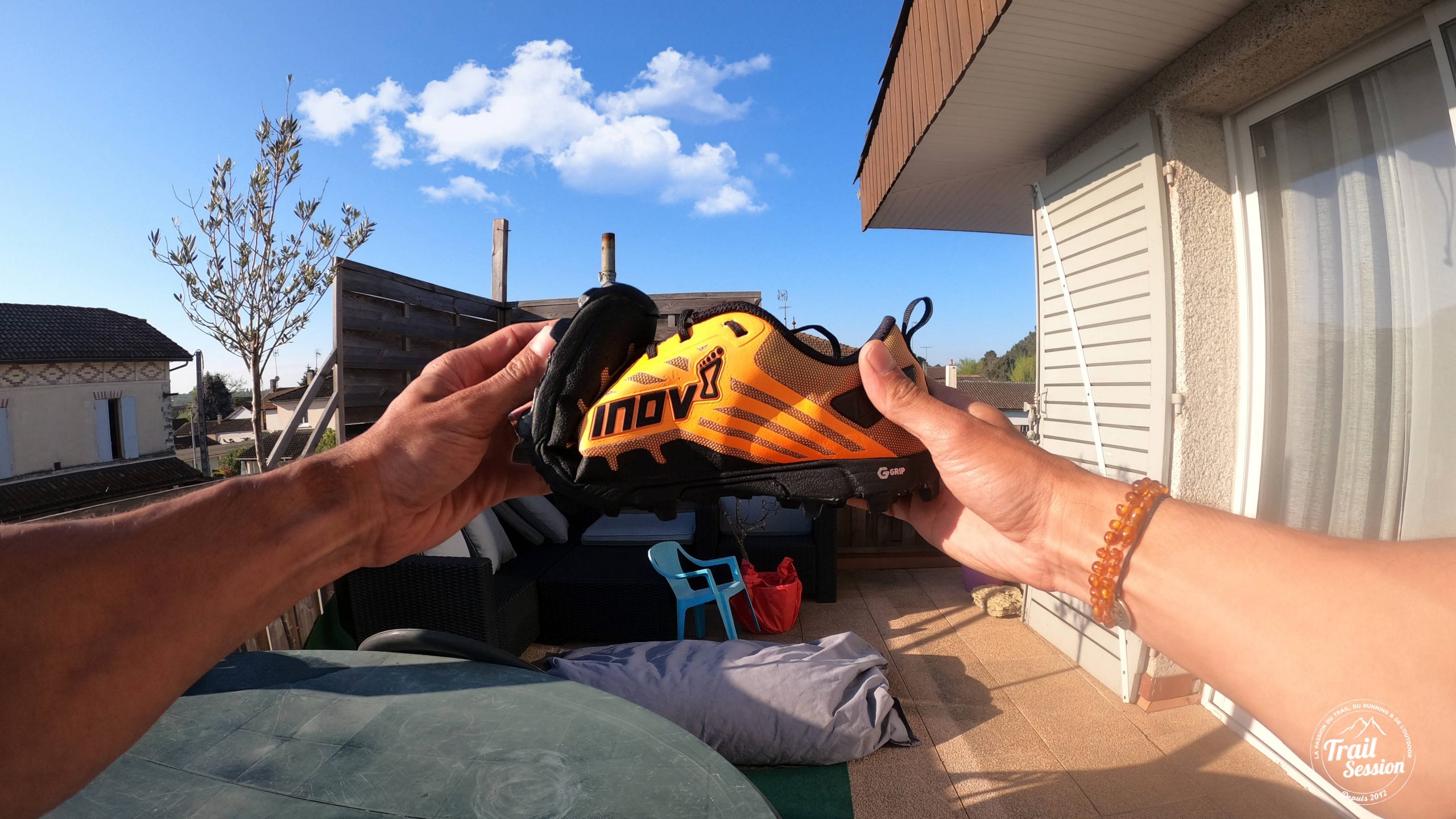 Peu importe, je me dis qu’il faut que je les mette aux pieds et que je continue de les « faire » pour savoir si je vais trouver de bonnes sensations. La très bonne surprise reste tout de même un poids minimaliste (235 g), une souplesse d’ensemble et une languette fine bien ajustée.