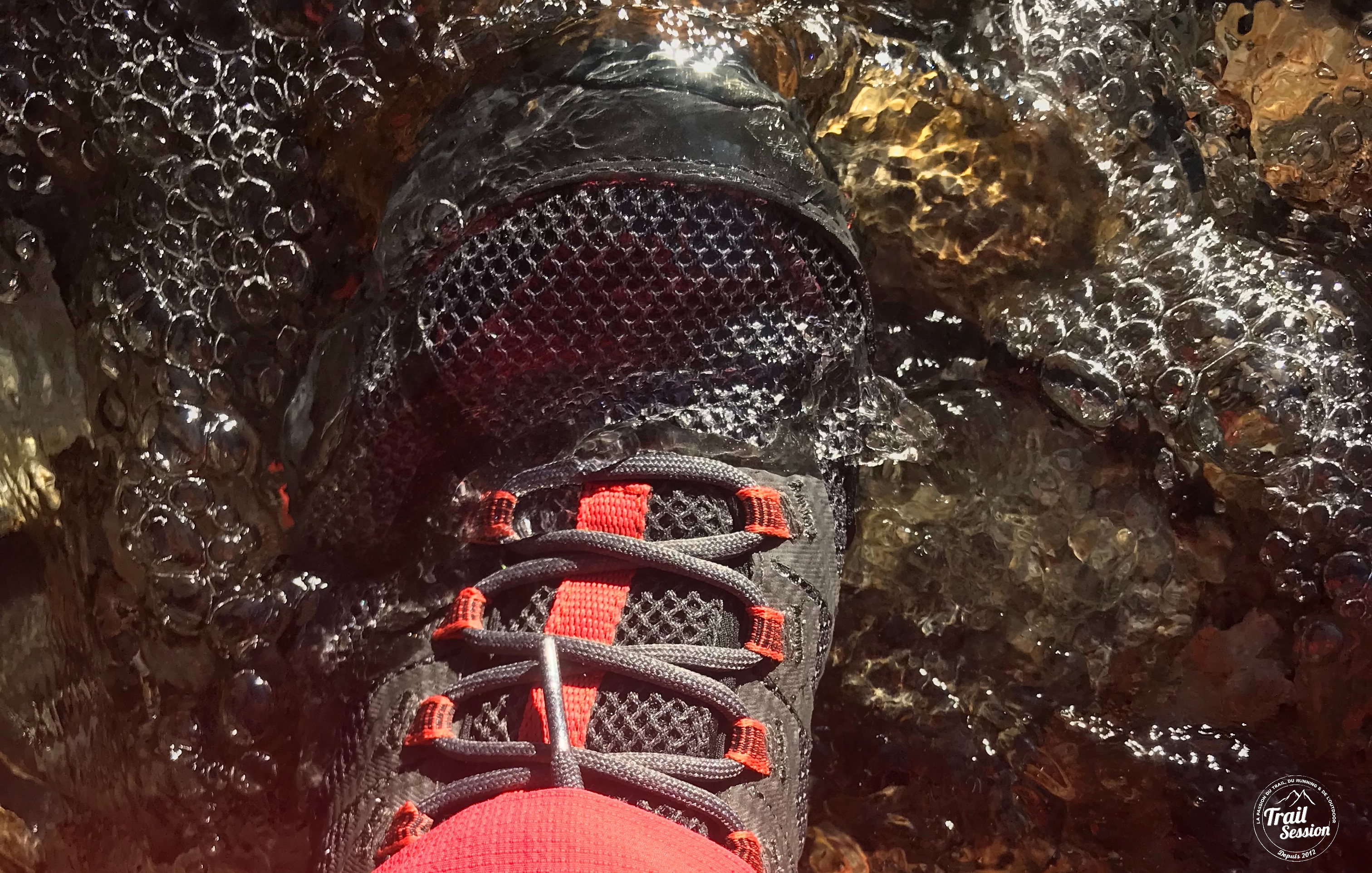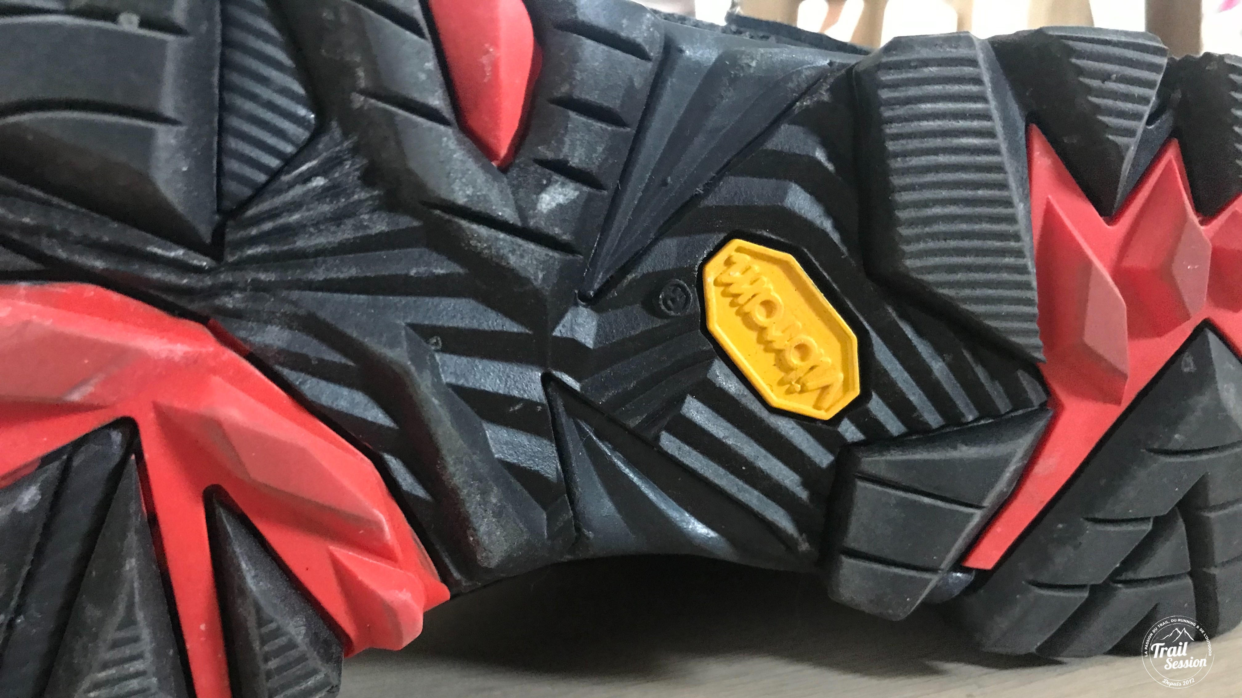 Son point fort réside dans sa semelle en Vibram Megagrip, qui pour l’avoir testée sur des parties humides, répond aux exigences des terrains accidentés et humides pour permettre au porteur de ne pas perdre en propulsion.