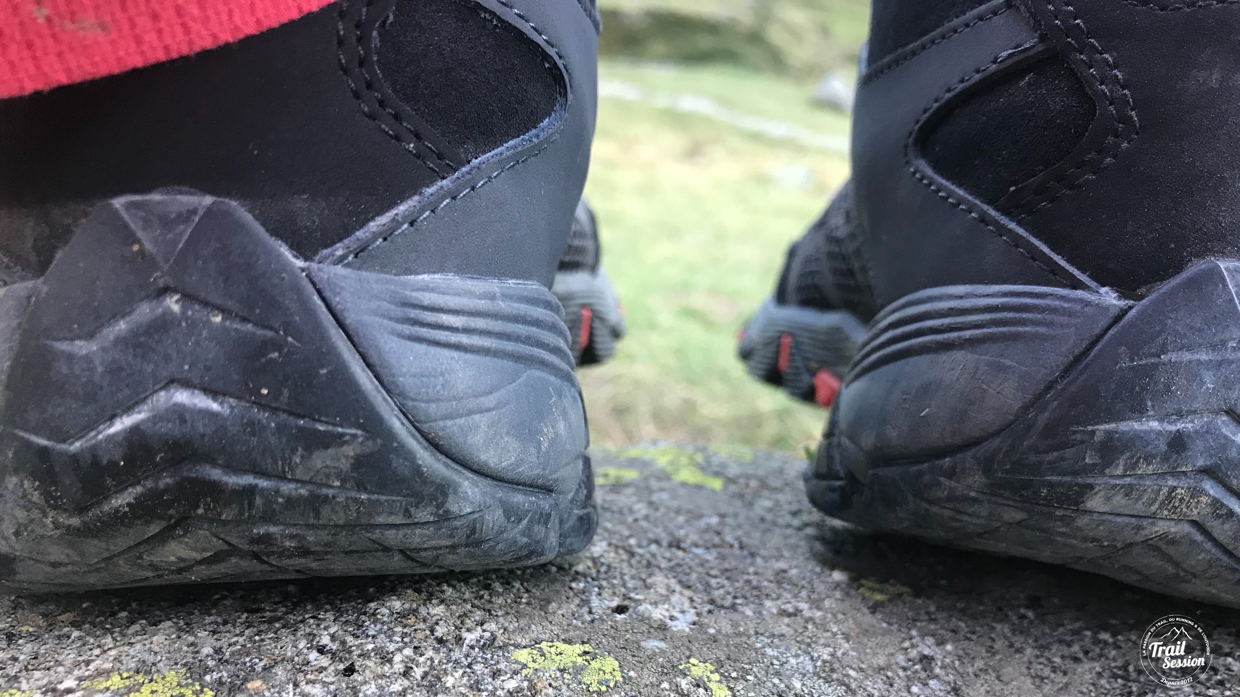 Le choix d’une tige haute (modèle Mid) permet une protection et un maintien accru de la cheville. Testée dans les Pyrénées j’ai remarqué une bonne tenue de la cheville notamment sur les dévers.