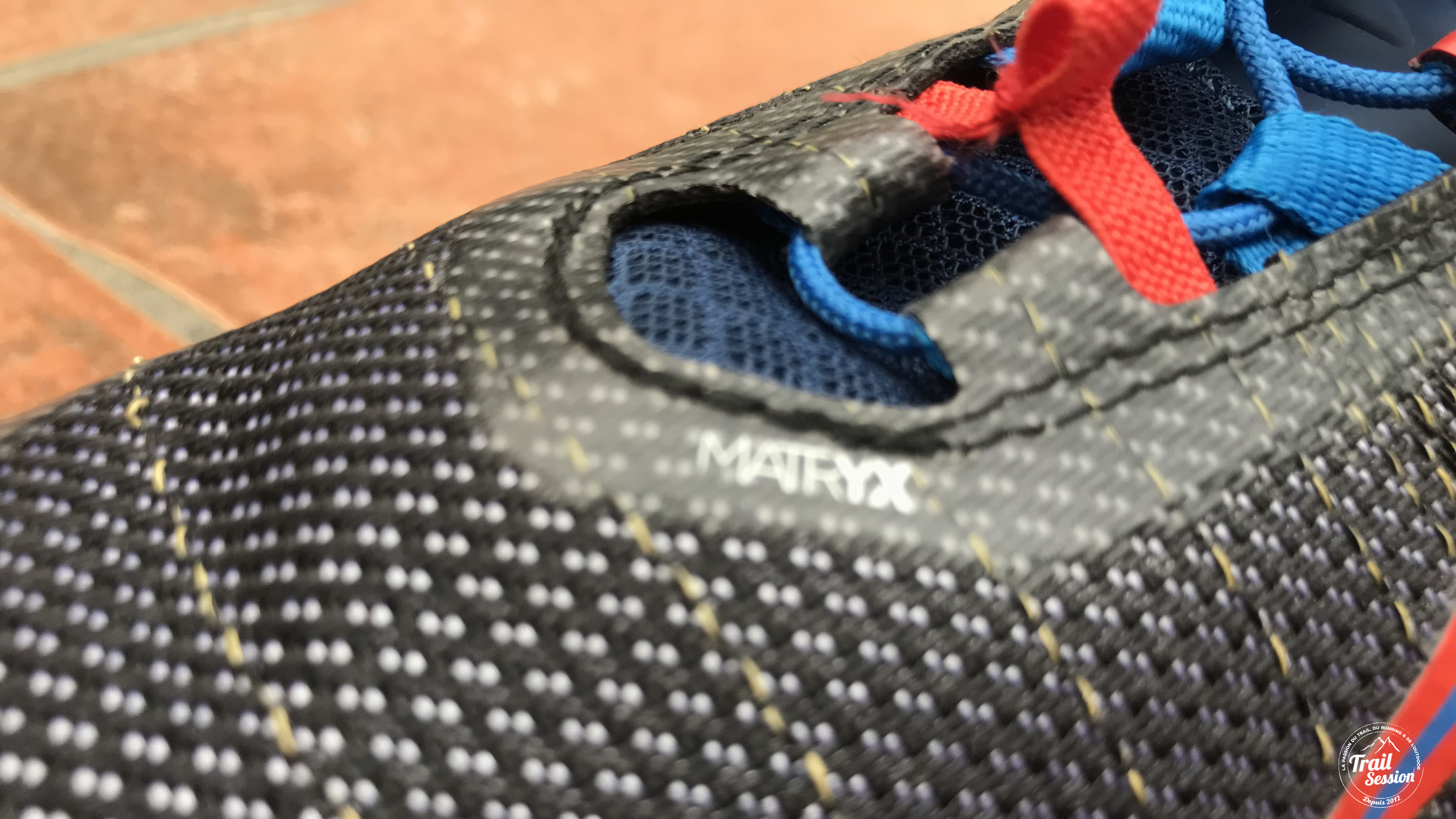 Comme je vous l’ai déjà soufflé en amont, l’une des grandes innovations de cette chaussure réside dans son tissu appelé Matrix. Je parle bien de tissu et non de mesh car à la différence de ce dernier, le tissu est très résistant.