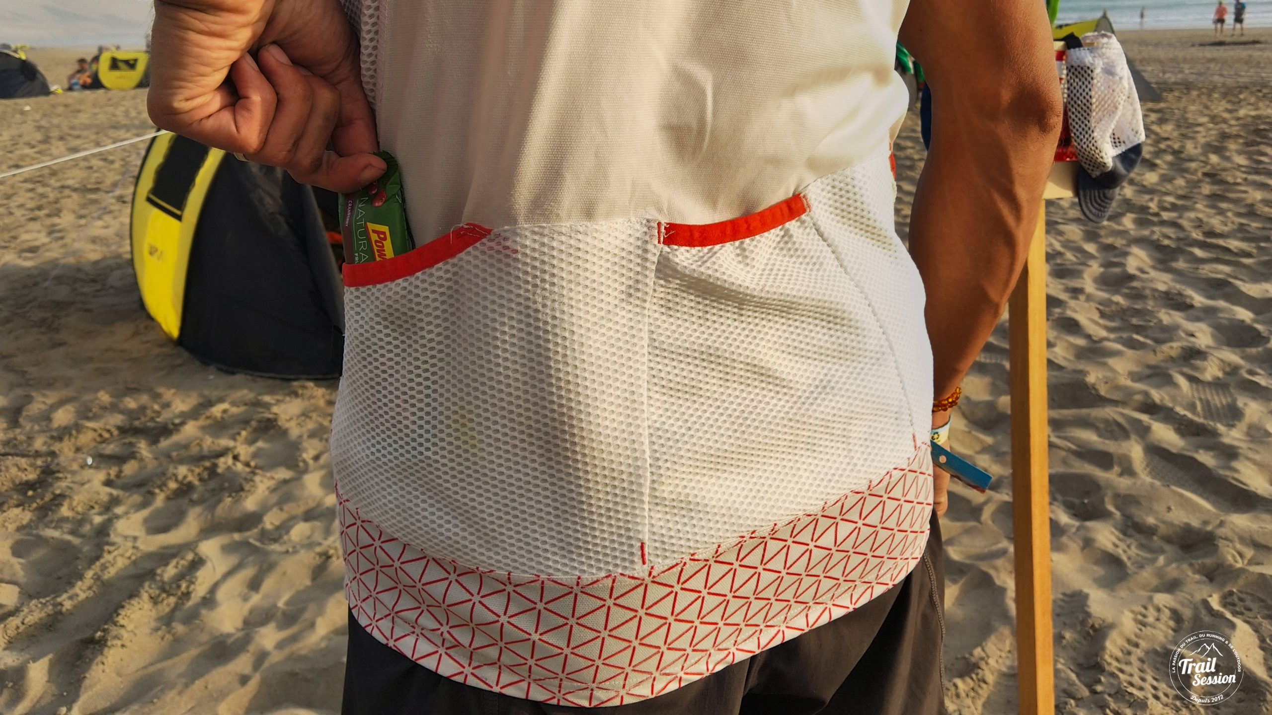 La partie la plus intéressante reste, sans aucun doute, les trois poches arrières. Je m’en suis servi pour mettre les barres que j’allais manger en course. Cela m’a évité de les sortir de mon sac. Elles sont vraiment pratiques et assez grandes.