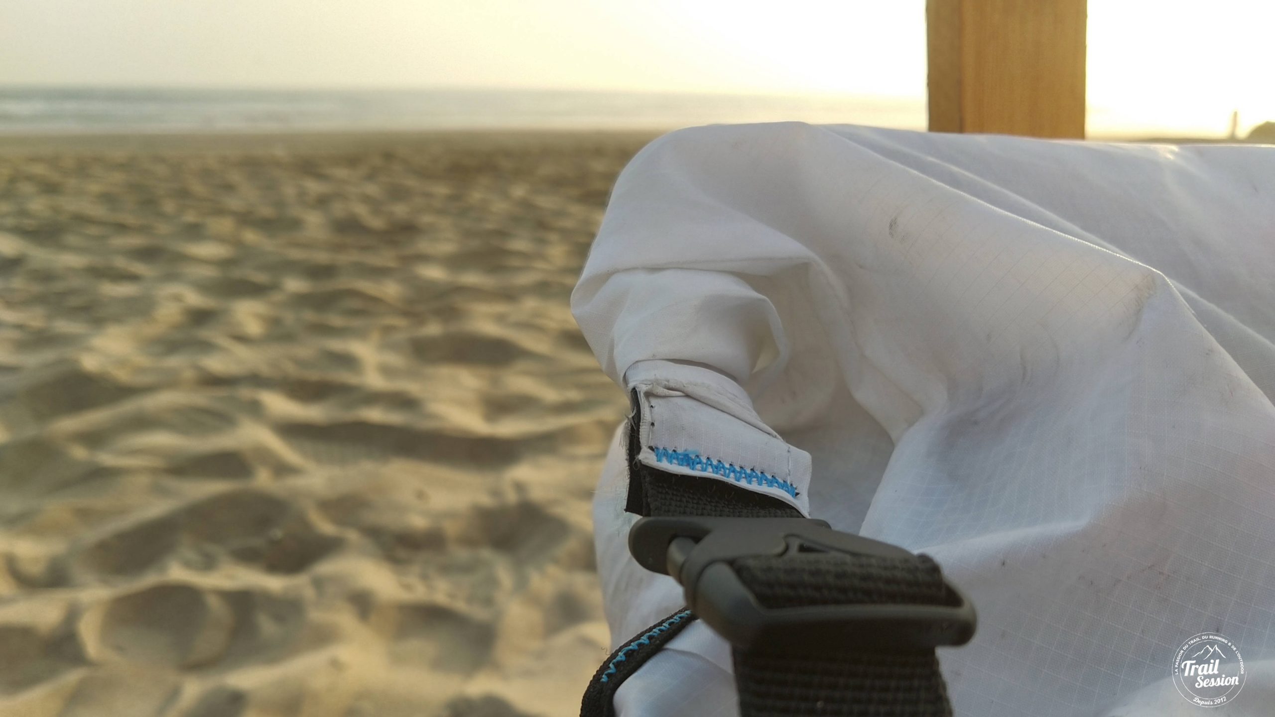 Efficace ne veut pas dire qu’aucun grain de sable ne passe. J’ai pu constater qu’il y avait tout de même un léger passage qui se fait par le haut de la chaussette. Je mettrais un Tape ou alors une bande élastique pour limiter l’espace libre à cet endroit.