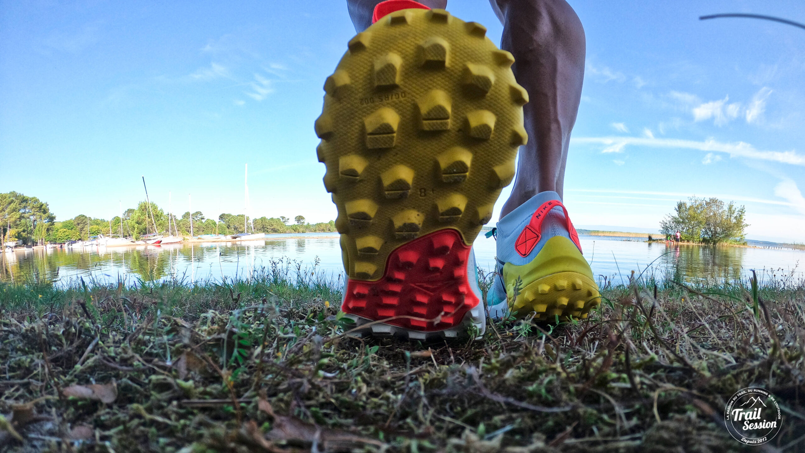 La forme des crampons est censée favoriser le débourrage et l’évacuation de la boue accumulée sur terrains gras. J’ai malheureusement pas pu vérifier ces éléments car il n’a pas plu lors de ma période d’essai.