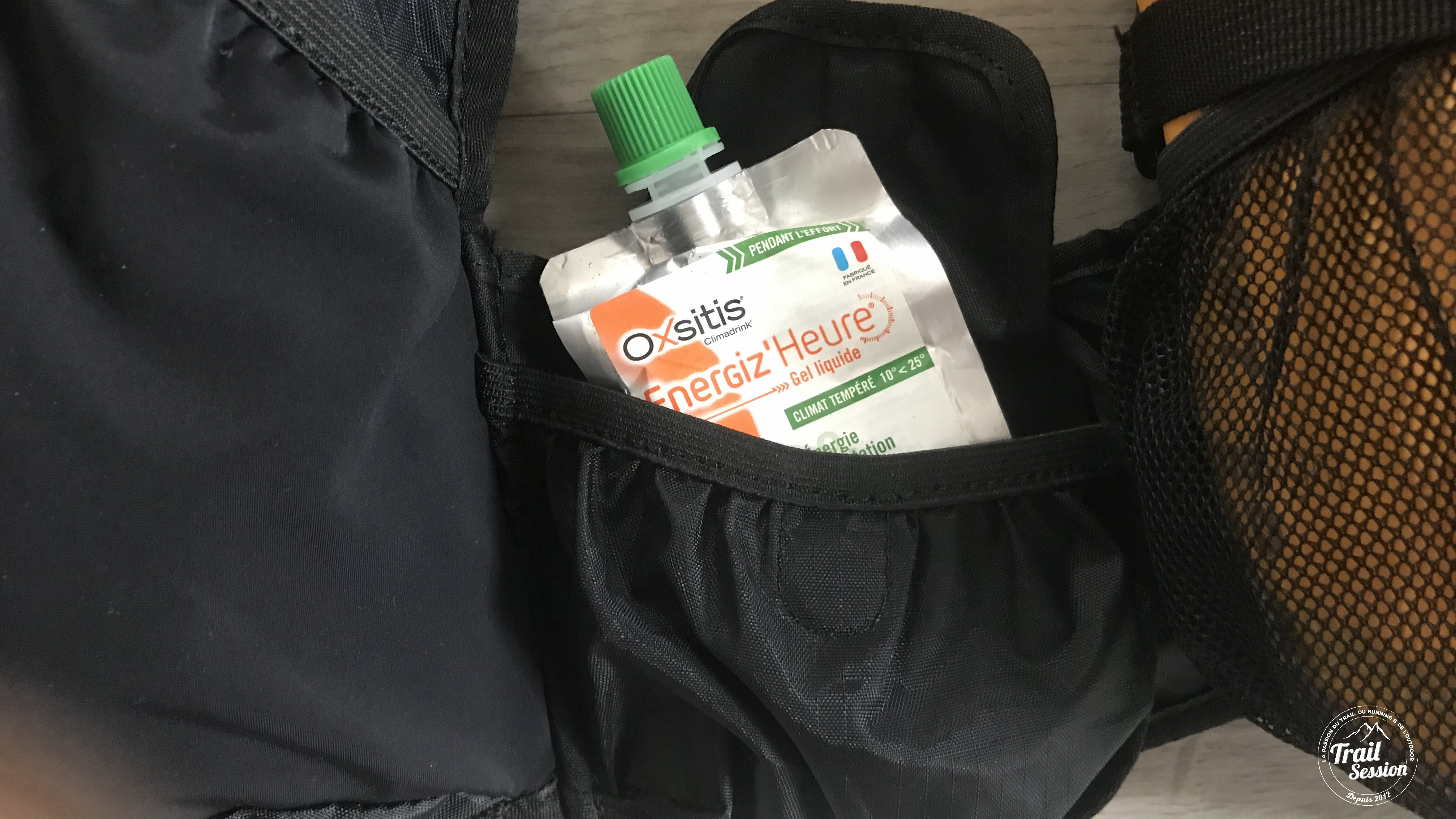 Tout comme la majorité des sacs Oxsitis, on retrouve les fameuses pochettes aimantées sur les côtés ainsi que deux poches zippées pour sécuriser vos objets de valeur et/ou un téléphone portable. Au niveau du rangement, on retrouve en plus deux pochettes en filet sur chaque côté (assez grandes pour y ranger un matelas de voyage ou une bouteille d’eau d’1,5l). Deux emplacements pour bidons jusqu’à 750ml (non fournis) vous apportent une hydratation supplémentaire lors de vos sessions de trail.