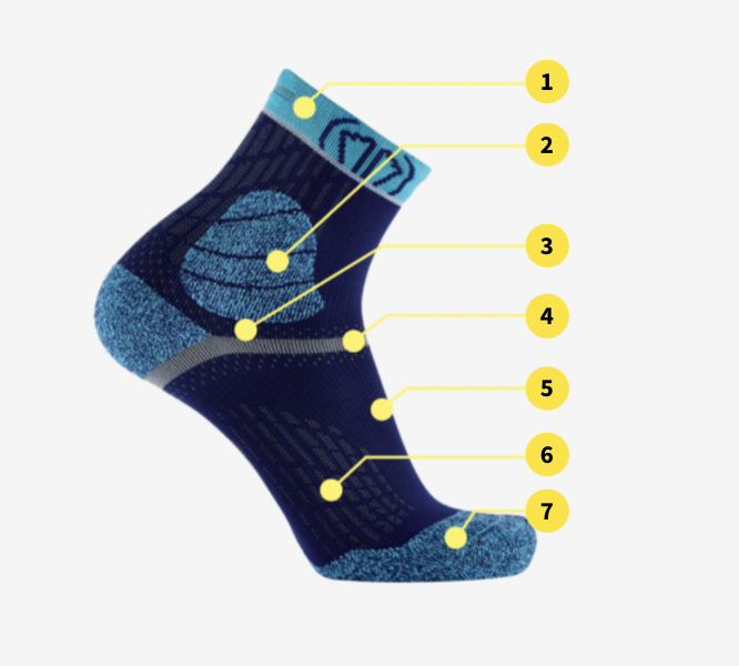 C’est ce qui caractérise une chaussette de trail par rapport à une chaussette de route. En effet, lorsqu’on court sur des terrains accidentés, nos chevilles sont parfois malmenées par des coups involontaires de nos chaussures sur ces dernières.