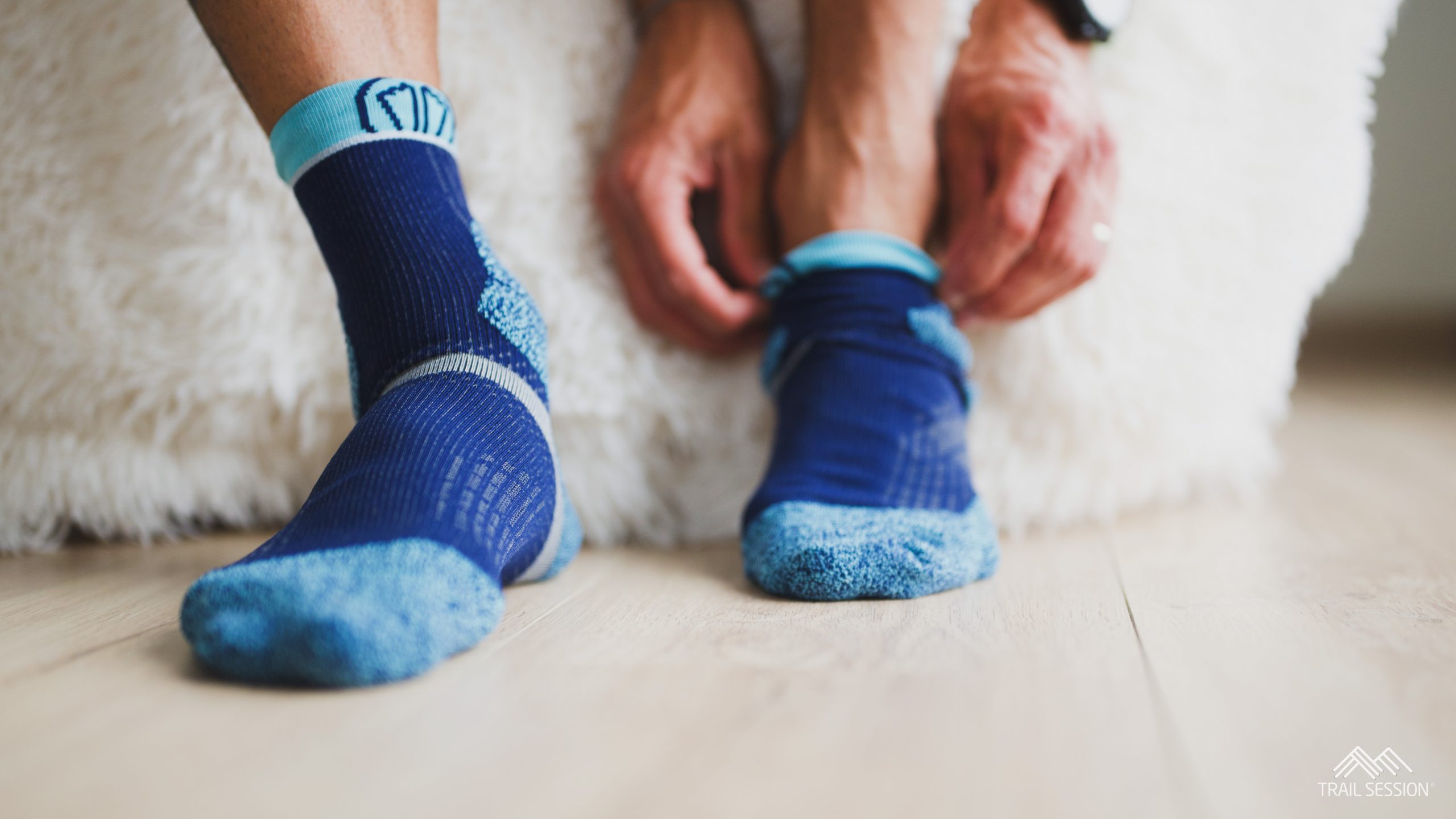Sébastien : Bon je ne vais pas être très original dans ce 1er constat. Avec la TRAIL PROTECT SOCKS, on a vraiment un modèle très confortable. La chaussette offre un maintien vraiment très bon. Le modèle est préformé anatomiquement avec une compression très correcte. En clair en phase dynamique, pas de sensation de frottements.