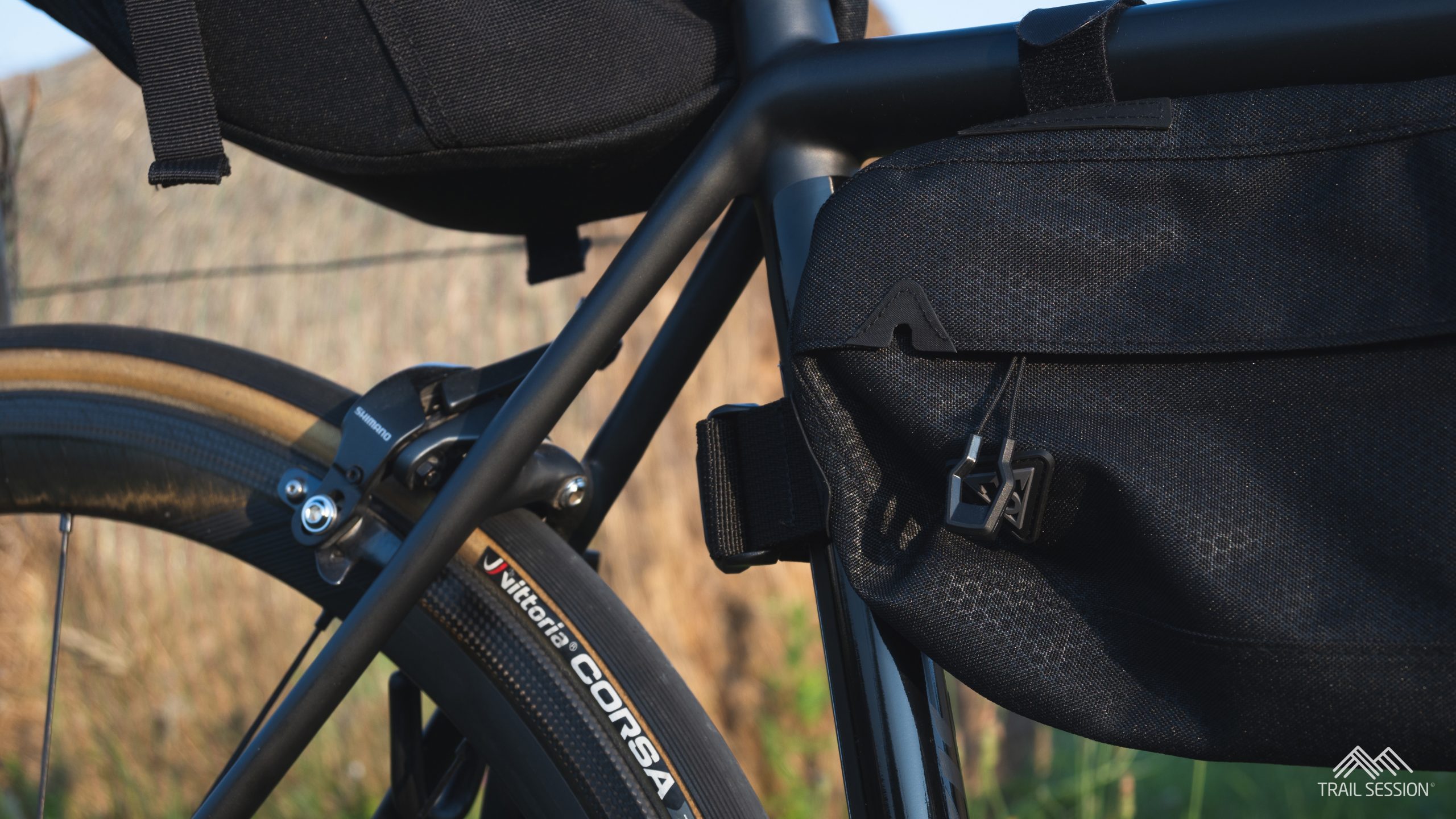 Des supports d’espacement spéciaux et des boucles à dégagement rapide sont également fournis pour adapter cette sacoche a n’importe quel cadre.
