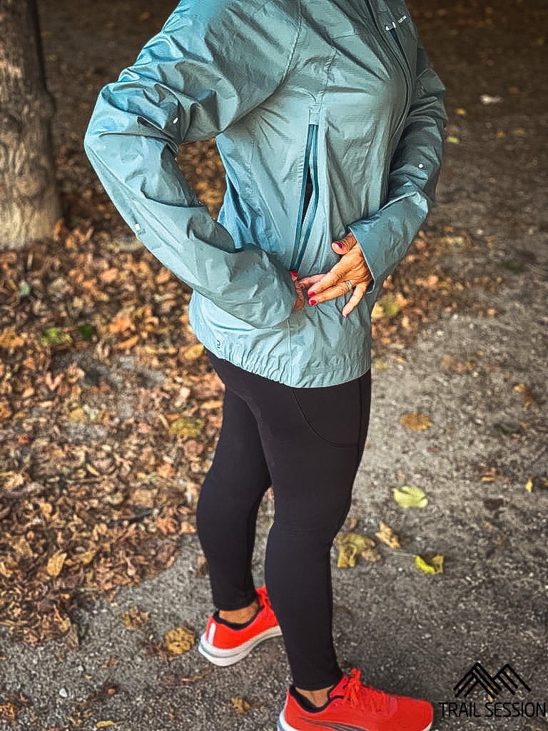 Alors, certes, pour une petite course ou randonnée, cela me convient aussi mais pour des séances plus longues, clairement, ce ne sera pas possible. J’ai besoin de me sentir plus protégée en termes de pluie.