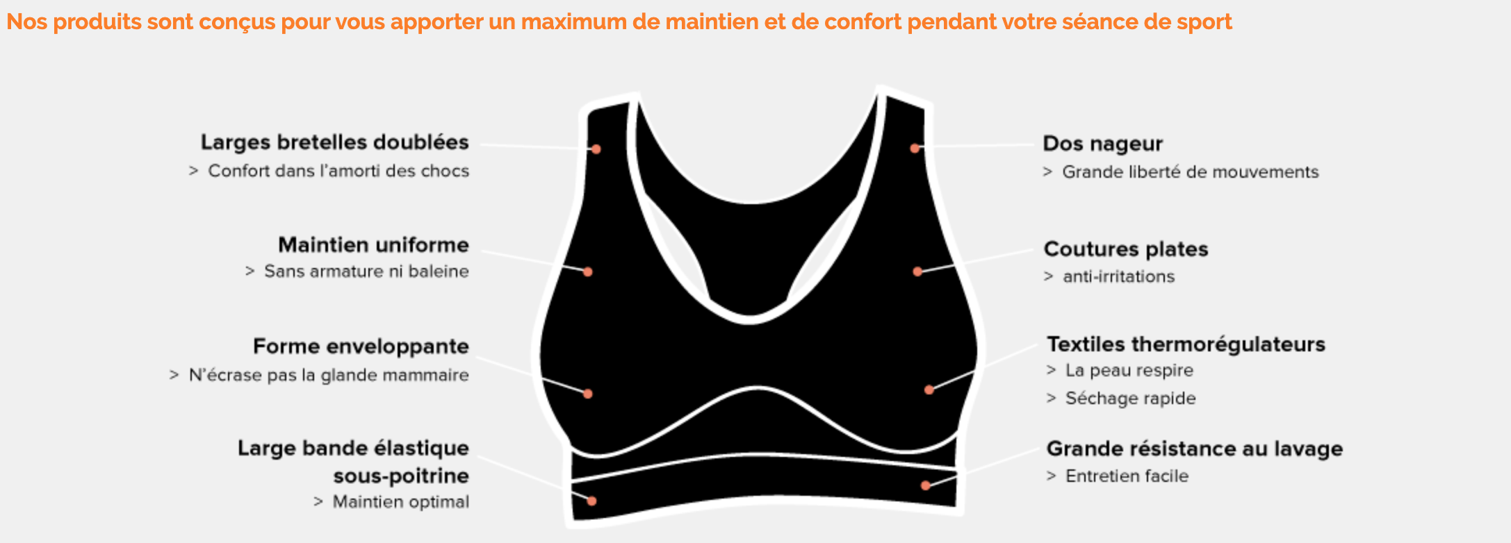 C’est assez simple au final car un soutien de gorge de sport propose les mêmes mensurations que le soutien-gorge de ville. Exit donc le casse-tête des tailles S, M, L etc…